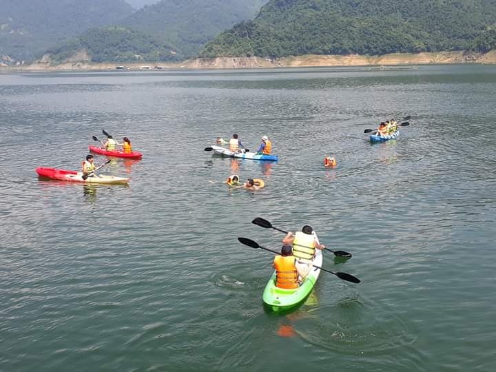 Chiều: Quý khách tham gia trải nghiệm suối Ké, tắm suối, hoặc khám phá lòng hồ Hòa Bình bằng thuyền Kayak, bơi sông có áo phao